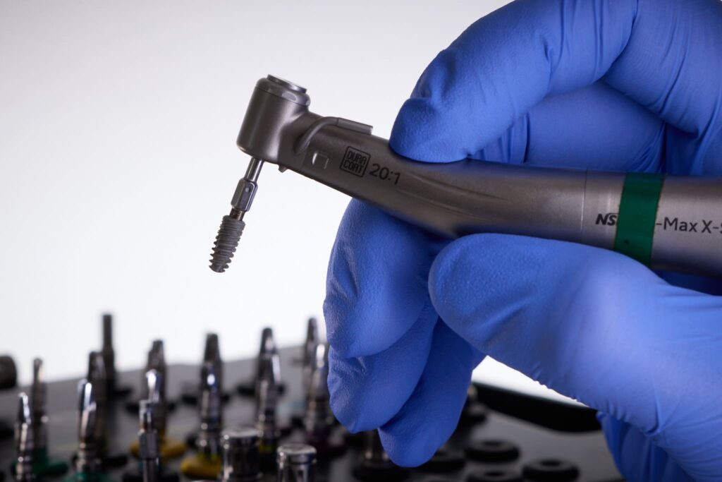 Avant la pose, une chirurgie préimplantaire peut être nécessaire pour renforcer l’os. Selon le cas, il peut s’agir d’une greffe osseuse, d’une élévation du sinus (sinus lift) ou d’une régénération osseuse guidée.